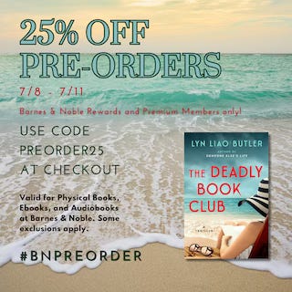 Pre-Order The Deadly Book Club from Barnes & Noble from July 8 - 11 and get 25% off. Pre-order here.